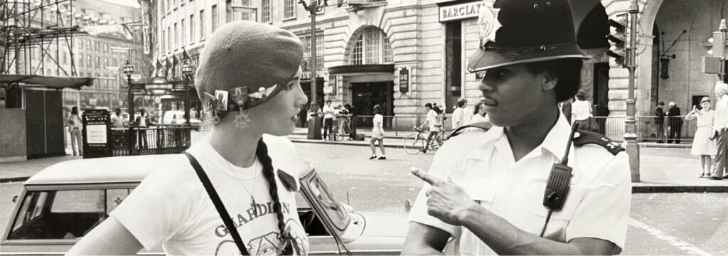 US ‘Guardian Angel’ volunteer crime prevention programme, joins PC Rhoden on patrol in Piccadilly Circus and Soho – 1983